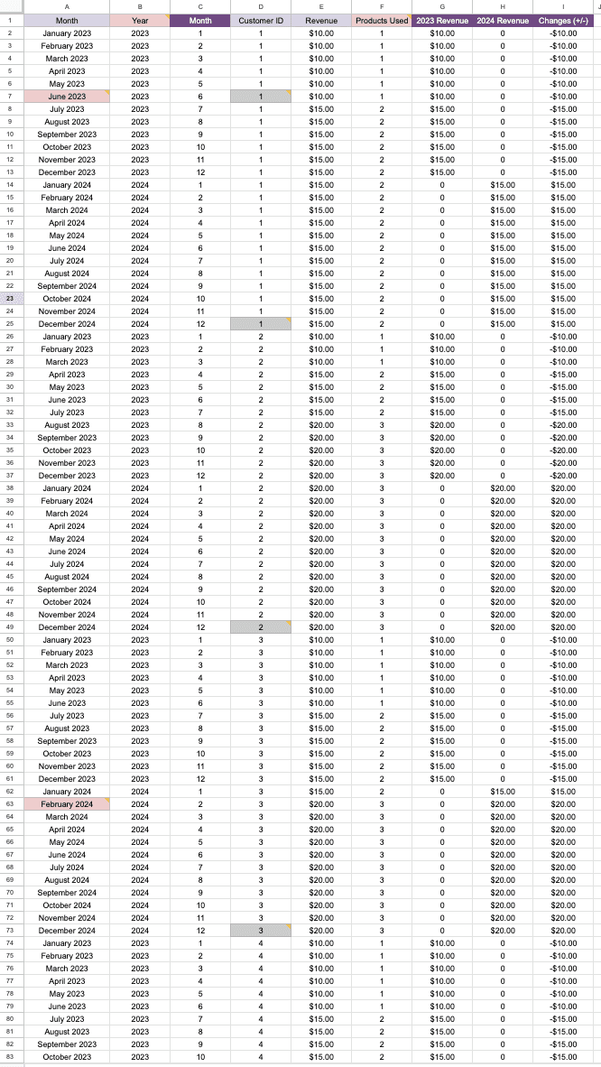 click here to view the full google sheets